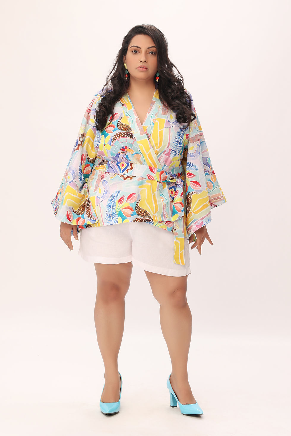 Guldasta printed multi color cotton linen kimono