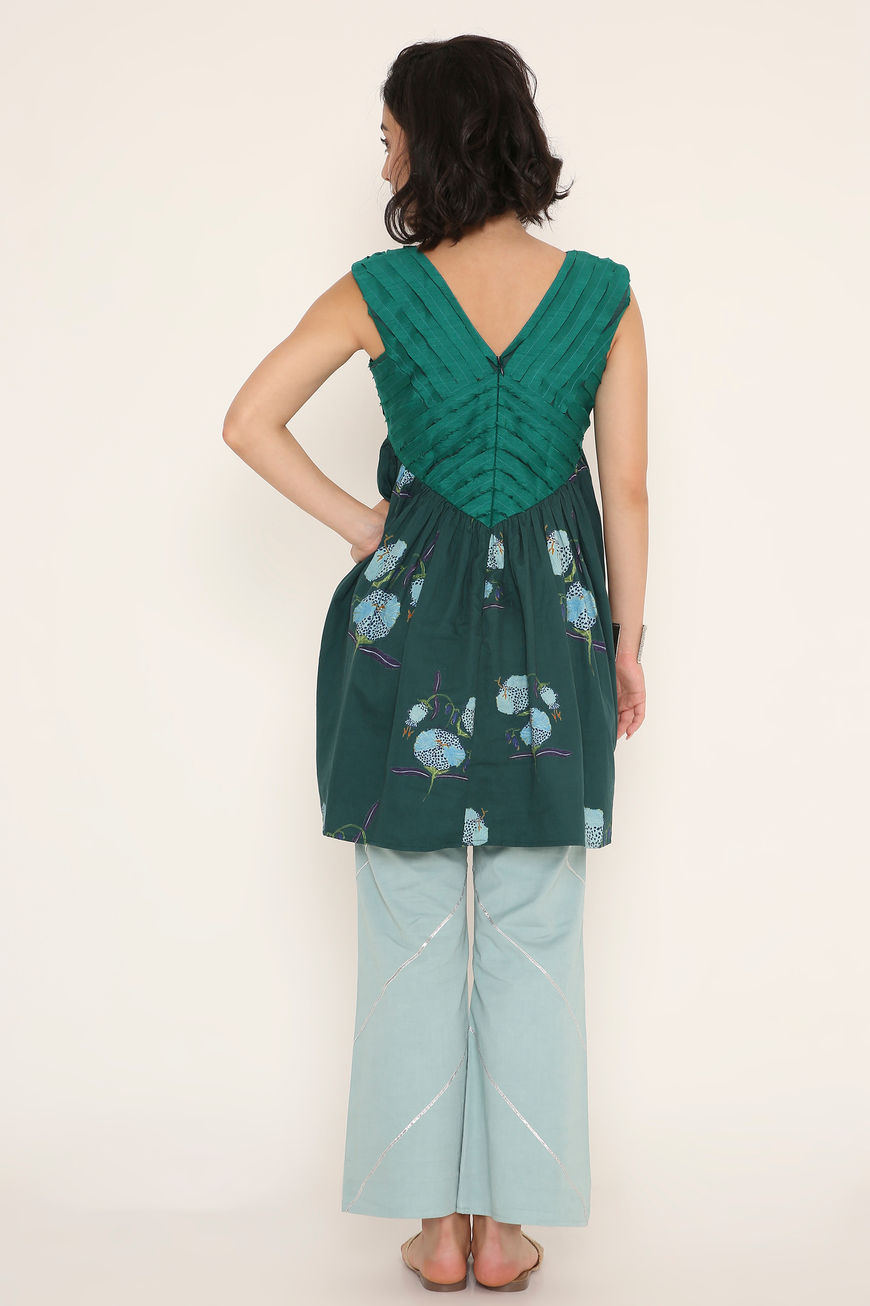 Hand-dyed in a serene sky-blue, these pants feature diagonal gota embroidery for a touch of festive charm. Crafted in lux cotton twill, the silhouette is tailored yet comfortable, with a clean front concealed closure, pockets on both sides, and a back elastic for ease. Can be paired with our Kesar Kurta or styled with something from your own wardrobe.